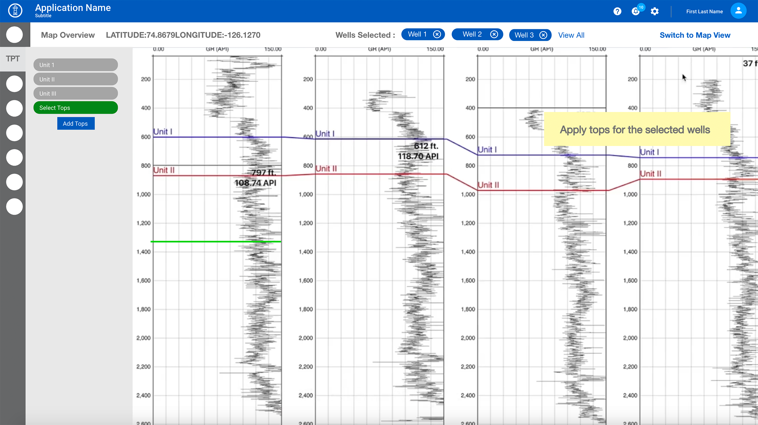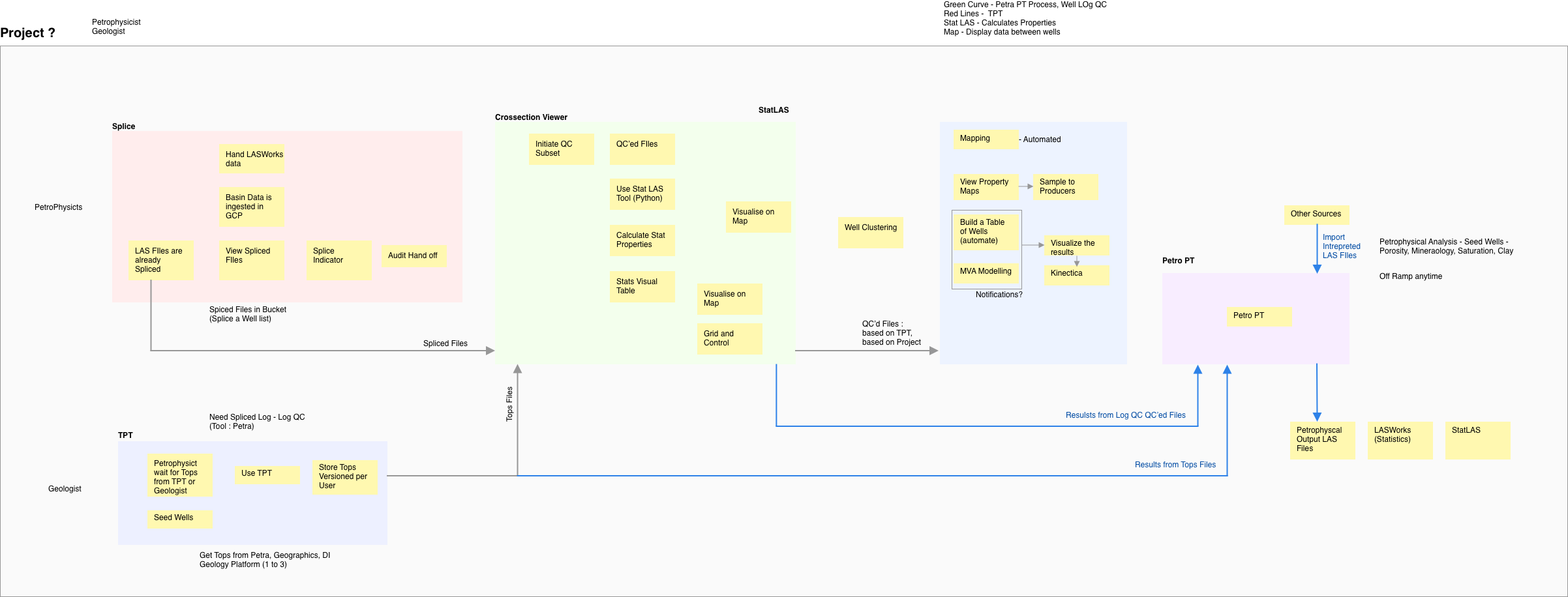 Some of the user stories are : Map View, Log View - Functions & Toolbar, Run TPT, Generate Surface, Load Tops, View Tops, Log QC, and Other sections of the product which includes form pages, tables, etc