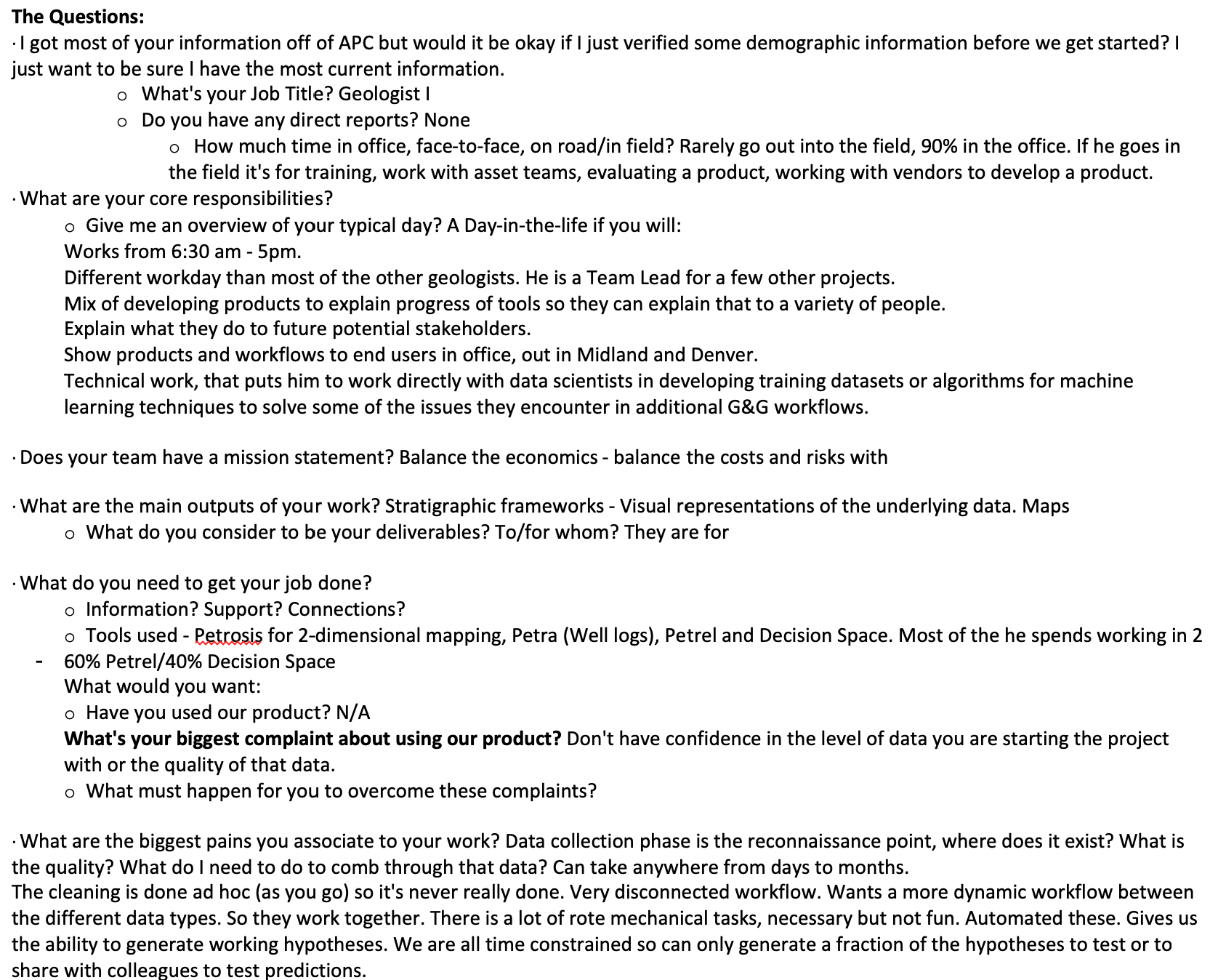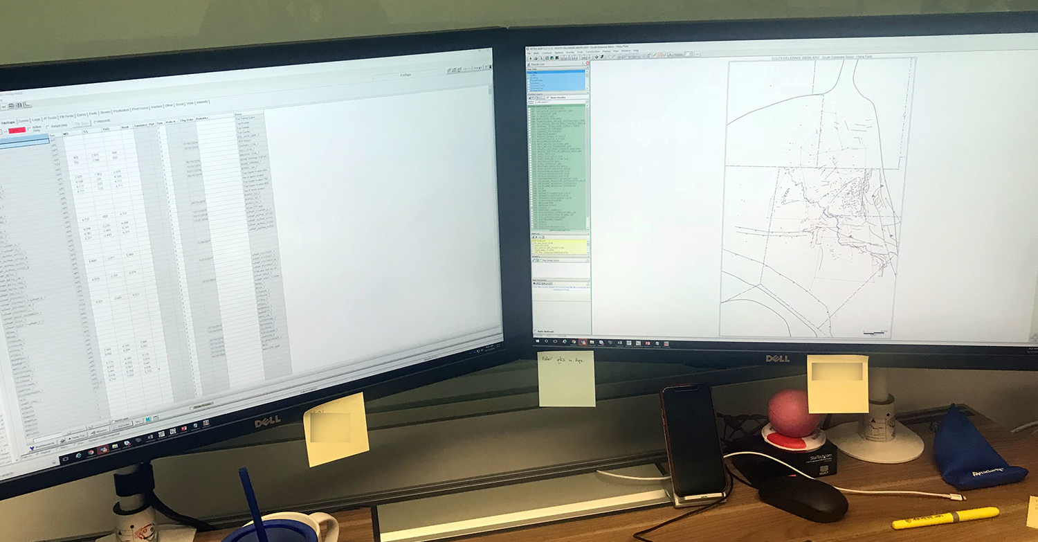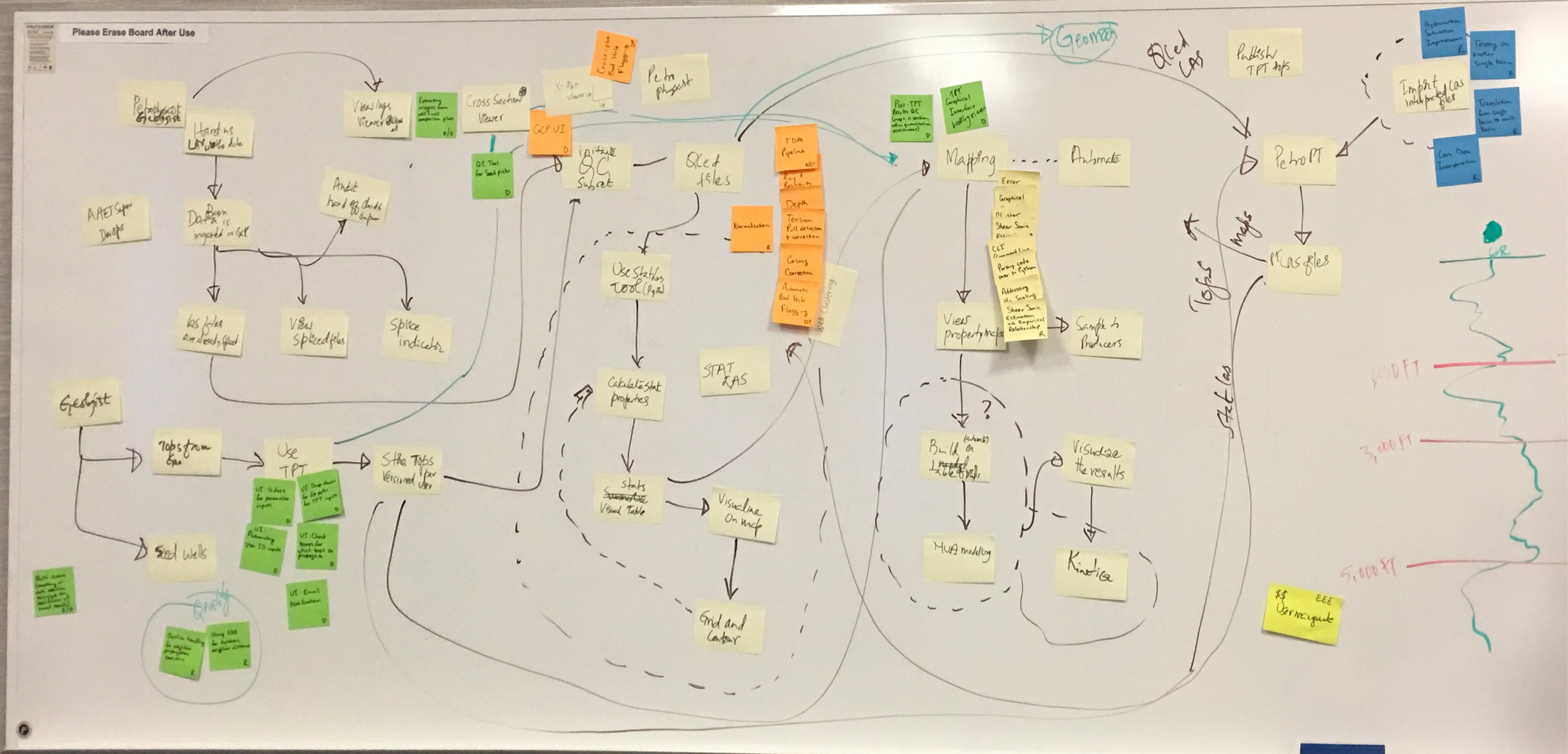 There were many problems and questions after the workshop and user research. I started to layout sketches, and gather more information and whiteboard ideas for various sections of the product. One of the main problems was identifying a layout. Split focus and multiple monitor setup was one of many problems identified and with lots of questions. Based on the user research, it is a normal behavior to work on multiple monitors for the geologist who works on a large amount of data.