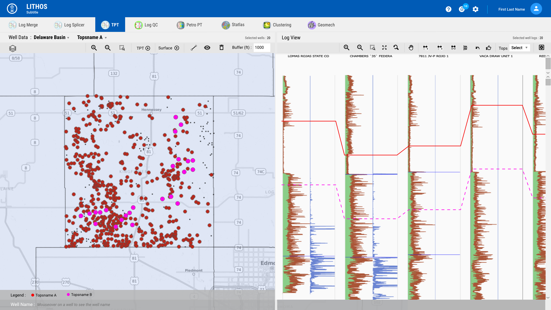 - With machine learning, Lithos provides a simpler, faster "tops" interpretation while running the data of a huge volume of well logs.